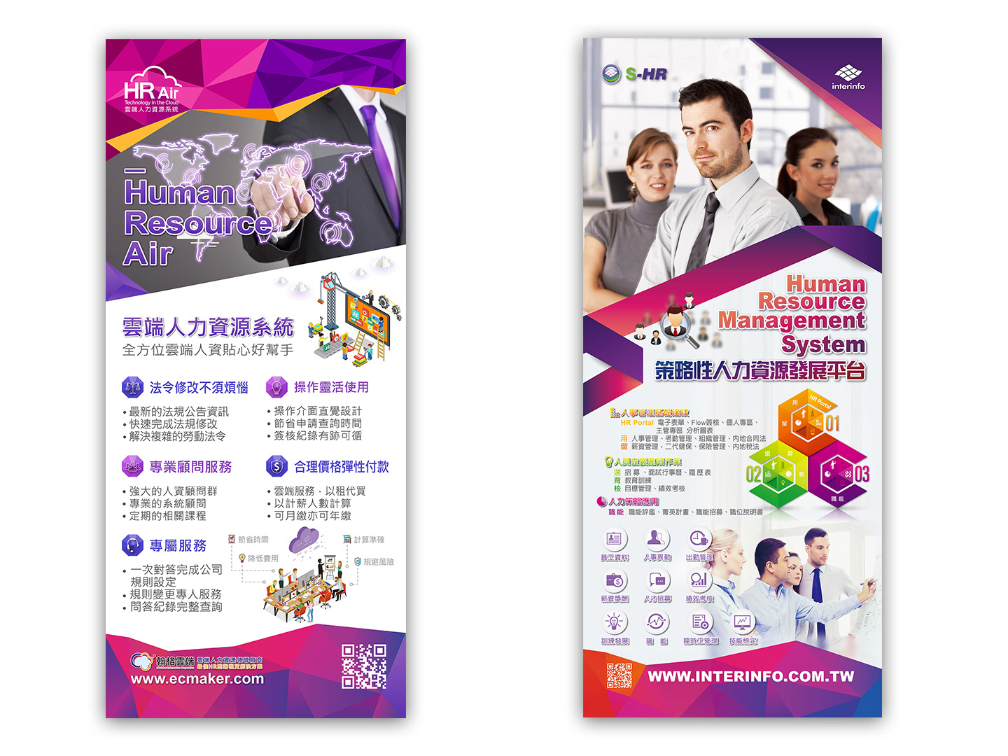 設計概念以產品形象,即時、穩定、專業。色調上以內斂、沈穩的-灰色,搭配產品標準色-紫色,搭配商務人士彈指之間,運用雲端版人資平台,在複雜的瑣事,都能迅速解決。